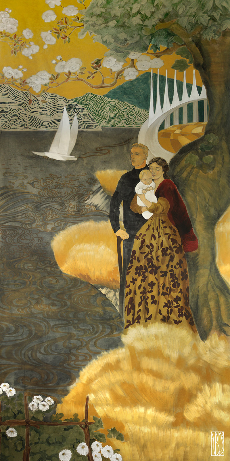 C’est en 2014 que plusieurs jeunes femmes répondent à une commande de l’Institut Iliade pour la réalisation de tentures murales, afin de décorer la scène de la Maison de la Chimie, dans le cadre de ses colloques annuels. À l’image des « Dames de France », mouvement lancé au XIXe siècle par la marquise de Cintré en soutien au comte de Chambord pour la réalisation de grandes broderies dans l’attente d’une Restauration, leur démarche s’inscrit dans un mouvement de « Re-naissance(s) » morale, intellectuelle et artistique de l’Europe. S’inscrivant à travers être, lieu et temps, ces femmes souhaitent s’inspirer des riches heures de l’histoire européenne, puisant dans ses mythes et légendes afin de les ré-inscrire dans le présent. Dans la lignée de leurs aînées, ce sont aujourd’hui plus d’une dizaine de jeunes femmes et jeunes hommes issus des rangs des auditeurs de l’Institut Iliade, dans une volonté de transmission, qui ont rejoint ou qui participent ponctuellement à cette phalange de jeunes artistes européens.
